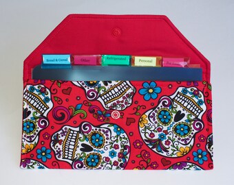 Red Sugar skull coupon organizer - fabric coupon holder - Receipt Holder - Budget Organizer Holder - gift idea