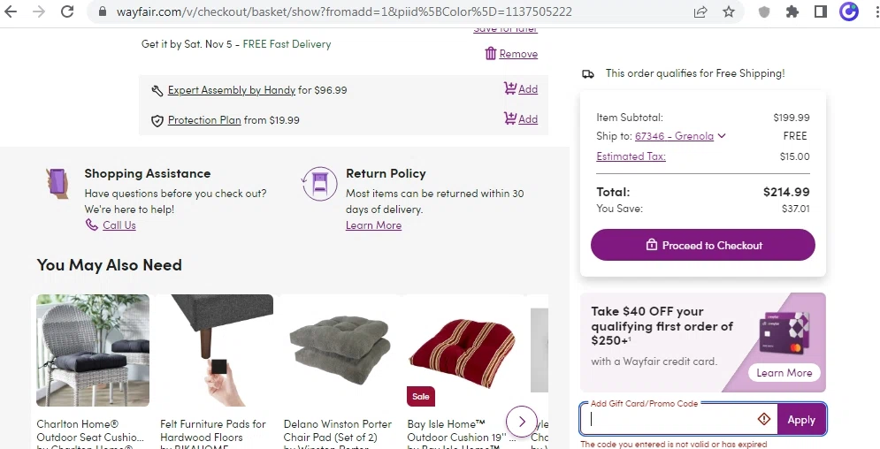 Wayfair Coupons November 2022 - USA TODAY Coupons Step 4: Enter the code at the Wayfair checkout Now that you have the code copied, simply paste it into the " Add Gift Card/Promo Code " label at the checkout. Check out the image below...