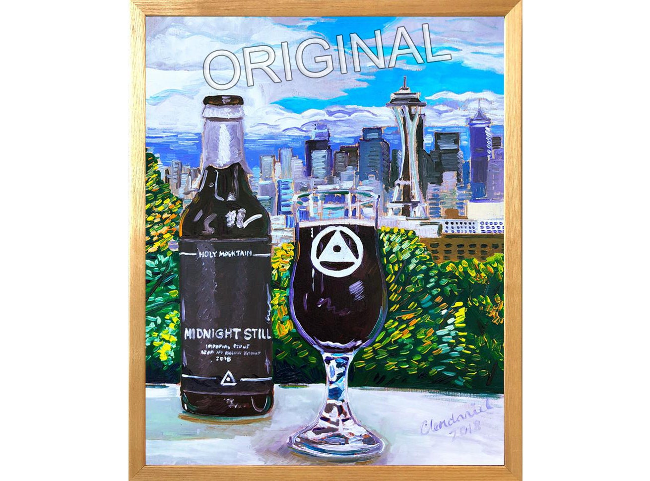 Midnight Still, Holy Mountain Brewing, Seattle Beer Art, Washington Craft Beer Gift, Seattle Space Needle Painting, Imperial Stout, Bar Art